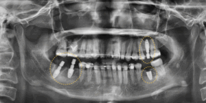 임플란트를 병행해 저작 기능을 회복해야 합니다.