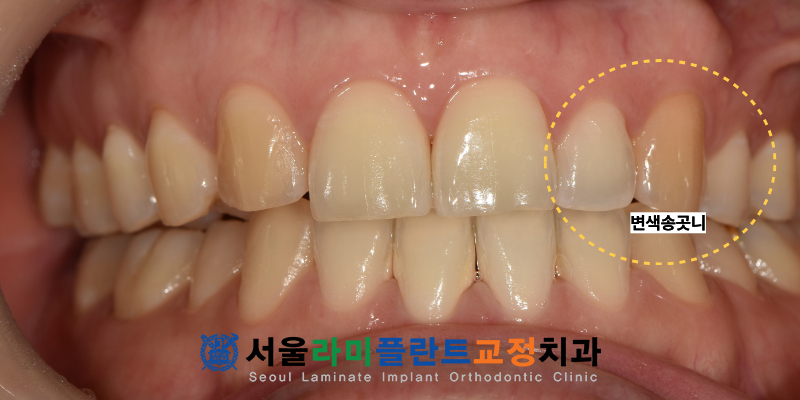 한쪽 송곳니가 유독 어둡게 보이는 증상으로 인해